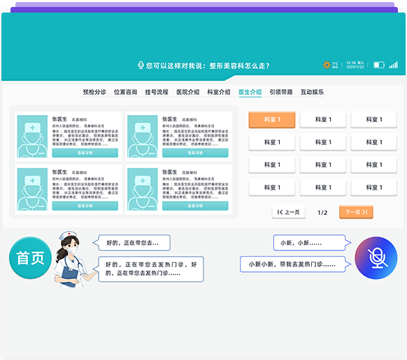 在導診機器人屏幕端可部署關于醫院的相關介紹及特色,同時展示每個科室介紹內容。
